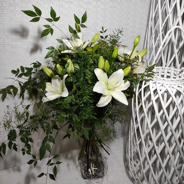 Ramo de 10 tallos de Lilium Oriental y verdes.