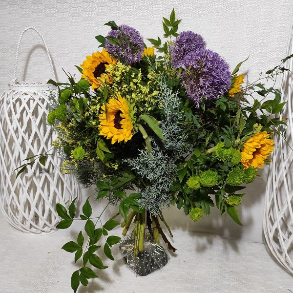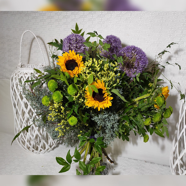 Es una composición variable, a gusto del florista. Popurrí de Flor Gio.